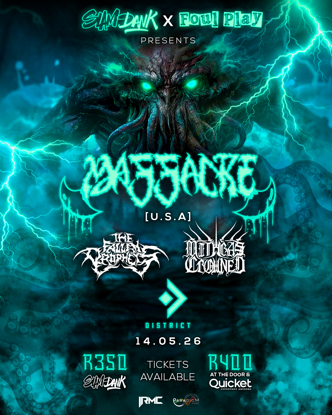 Slam Dank and Foul Play present Massacre (USA) live at District in District Six, Cape Town, on Thursday, 14 May 2026. Doors open at 20:00, and the lineup includes Cape Town’s The Fallen Prophets and Johannesburg’s Mithras Crowned in support.