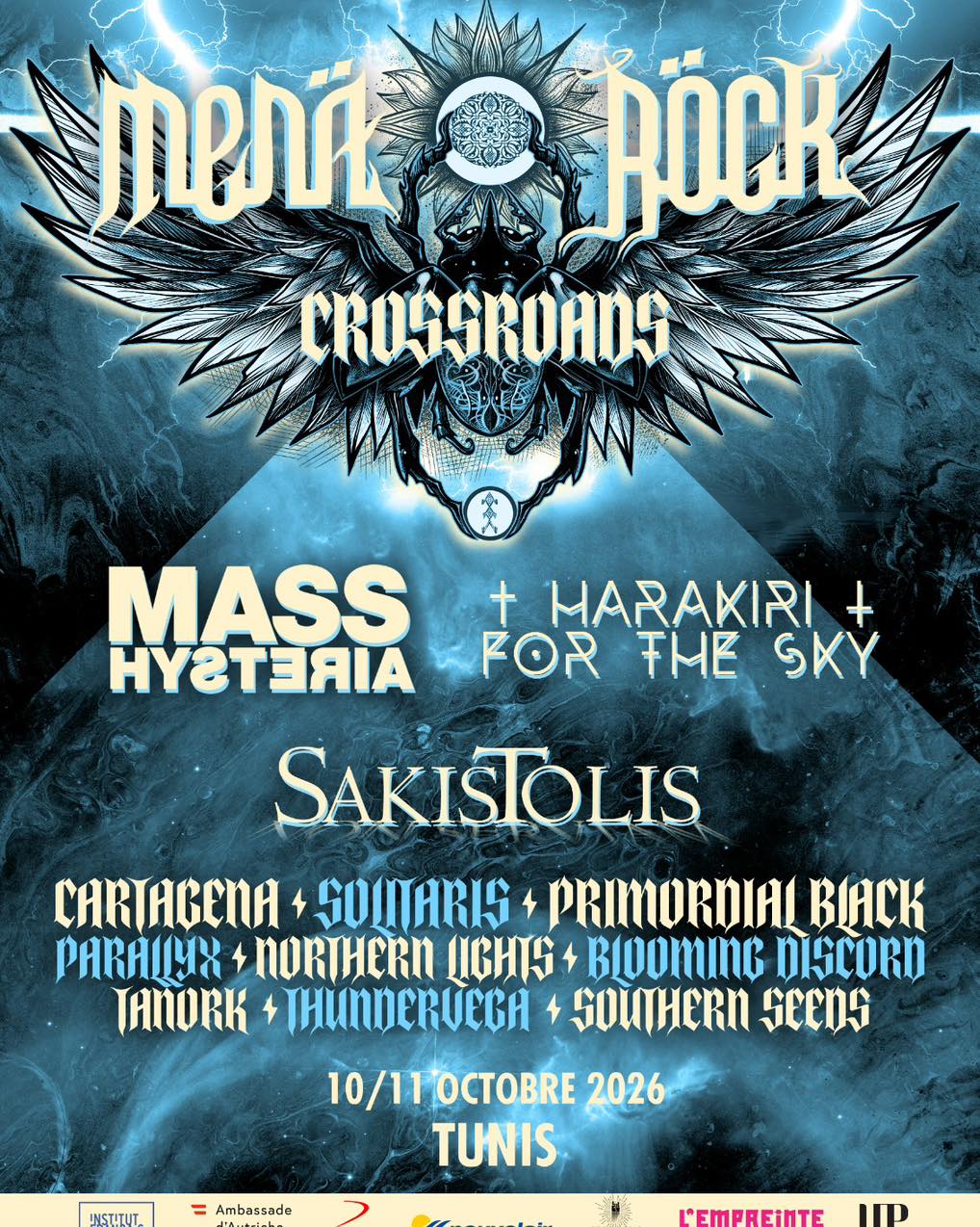 Mass Hysteria, Harakiri for the Sky, Sakis Tolis and a strong Tunisian contingent will headline a heavy cross-regional bill at MENA Rock Festival, set for October 10 and 11, 2026, at the Institut Français in Tunis.
