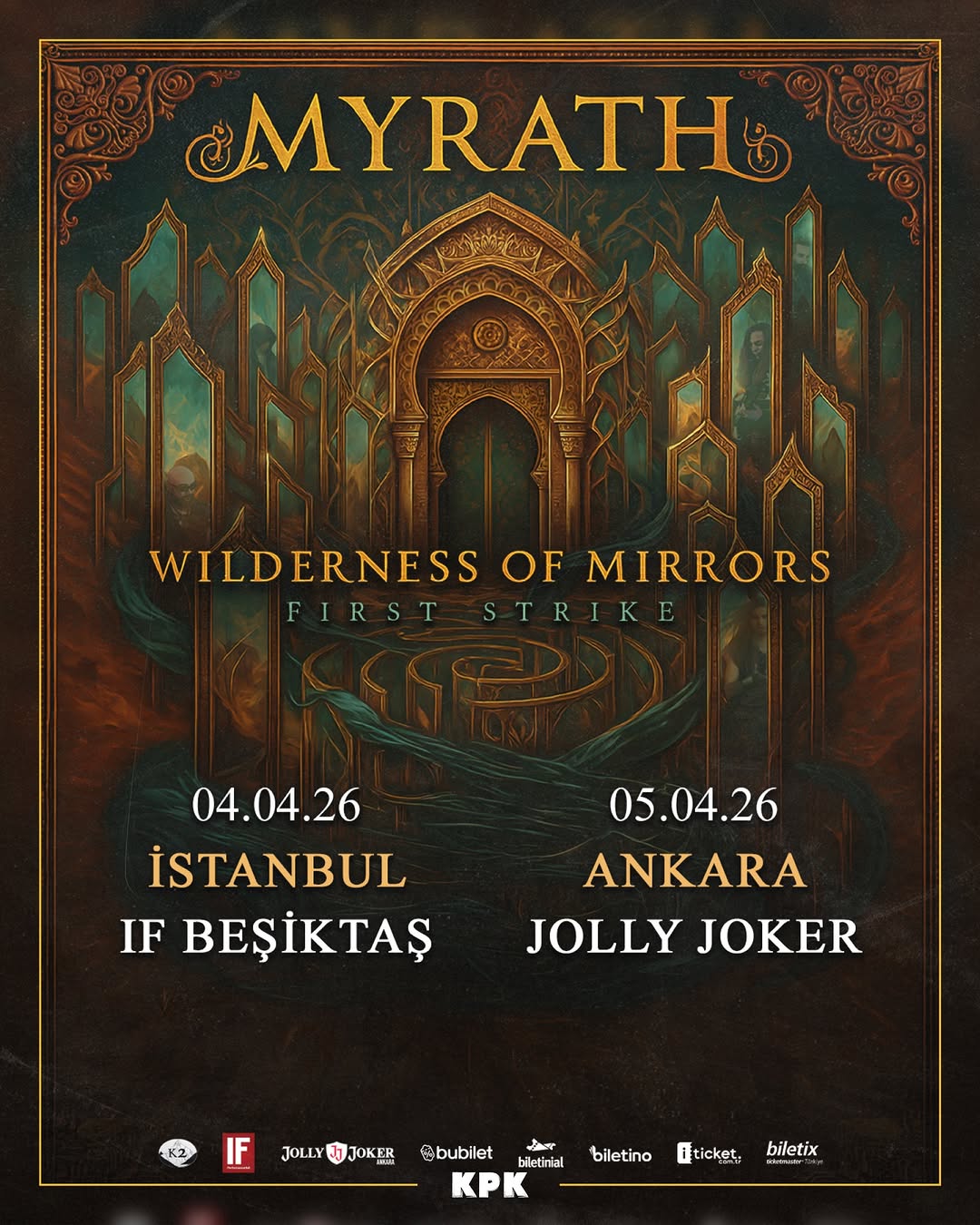 Myrath are now on the road in Europe. The tour began on 4 April in Istanbul and continued on 5 April in Ankara, with the band saying on social media that both were first-time stops. Those two shows opened a 20-date first leg that will keep them out until the end of the month.