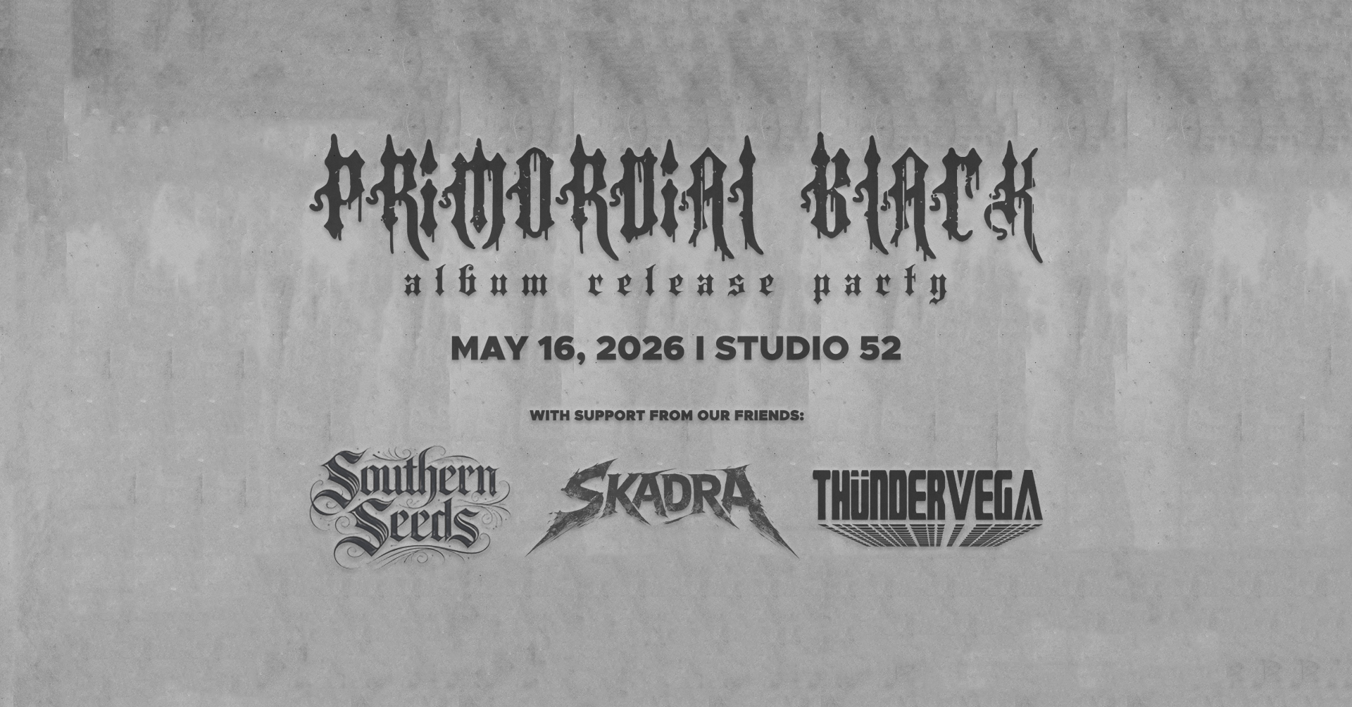 Primordial Black will celebrate the arrival of its second album with a release party at Studio 52 on 16 May 2026. For the Tunisian blackened-death metal group from Carthage, the show marks the latest step in a short but busy run that began with Monas Hieroglyphica in 2024 before expanding into Dark Matter Manifesto the following year.